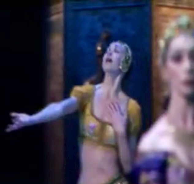 On peut cependant glaner quelques renseignements techniques au milieu de ce récit des luttes de pouvoir au sein d’une troupe où les étoiles pouvaient répéter les pas en chaussures de ville jusqu’au moment de la répétition générale. La variation élégiaque de Nikiya serait ainsi le résultat d’une fronde de Vazem refusant de faire des cabrioles avec pantalons et jupes à l’indienne. L’intrada de Gamzatti au 4e acte (aujourd’hui replacé au deuxième) comportait déjà des grands jetés descendant la scène en pente du Marinsky [la créatrice de Gamzatti, Melle Gortchakova, était une danseuse à ballon] sur lesquels Vazem se sentit obligée de surenchérir en accomplissant la même prouesse en remontant cette même pente [Cette partie est aujourd’hui perdue avec le reste du 4e acte].