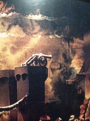 Finally all alone in the middle of nowhere, Kitri and Basilio come to realize just how serious their flirtatious love affair has become. When set upon by gypsies, the couple appeals for help. Kitri’s gold earrings play a cameo role. By the time Lorenzo, Gamache, the Don, etc., catch up with them, the young lovers have become unrecognizable in borrowed gypsy garb. Kitri is particularly brazen, jiggling her shoulders and rattling her new fake jewelry right under the noses of her pursuers. The guests are next treated to a puppet show, which tells the story of…young lovers on the run. The Don, always one more step away from the real world, first tries to rescue the puppets but then espies a giant monster: the famous windmill. Challenging it to a joust, the Don rushes to the attack. Even the orchestra goes oooh! The windmill wins.