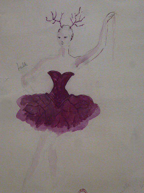 Maquette de costume pour le 1er mouvement « rubis » du Palais de Cristal par Leonor Fini