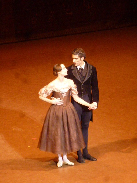C’est « la scène de la lettre ». Dans Pouchkine, Tatiana jette aux orties le riche russe classique pour écrire une lettre en français : le langage raffiné des romans, celui des amoureux transis de la sophistication. Dans l’opéra de Tchaïkovski, une sublime aria, retraduite en russe, chantée seule sur scène, transcrit cette reconnaissance d’Onéguine en âme sœur. Alors dans un ballet… Comment ? Dix minutes à regarder une fille gratter en mesure du papier avec de l’encre et une plume ? Dix minutes à mimer le texte de l’opéra ? Non. Si la couleur locale un tantinet cucul commençait à vous sortir par les yeux depuis vingt minutes, voilà le moment où vous allez faire « Ohhhh ! ». Au XIXe siècle, les sentiments d’une désespérément naïve Tatiana ne pouvaient être décemment exprimés que par des mots. Aujourd’hui par la danse et la magie d’un miroir, le mouvement seul convoiera ses émotions contradictoires –à la fois craintives et extatiques.