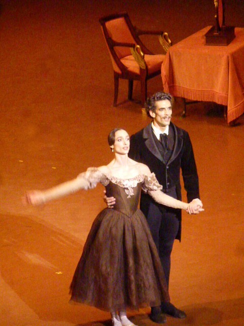 Bezard’s approach to the young Tatiana during their walk in the garden almost made you feel as if she were a figment of his imagination. Dorothée Gilbert’s pensive and subdued portrayal furthered this vision. She always seemed lighter than a feather, ready slip out of his arms and float away. Bezard partnered her with utmost care. Each time he lifted her he so carefully returned her to the ground that the movement seemed to be in slow-motion. They were both, then, as if caught up in their own daydreams.