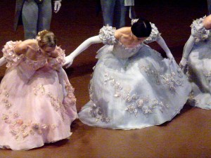 There’s that one long and repeated phrase set to agonized music where Onegin crawls on his knees behind the swooning Tatiana, desperate to pull her back into his orbit. Usually, your focus is on the crawl, on him. Here you focus on the vehemence with which she rips her hands –so tightly balled into fists – from Onegin’s grasp, and on the way she seems to lose her balance – rather than surrender — during their calvary. These two are indeed soul-mates, in that they are doomed to never find the cure for their sorrow and regrets. Neither’s heart shall ever be healed.