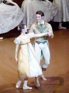 Lenski danse une aria qu’il tend désespérément – par de longues arabesques et des cambrés- vers les beaux jours heureux, vers la plénitude de la vie, de la femme idéale, des mots poétiques qu’il aime tant… Et il leur dit adieu. Car, dans sa fureur de la veille, il a provoqué son meilleur ami en duel (Pouckine sera lui-même tué en duel pour défendre vainement l’honneur de sa femme. Ainsi, le texte du roman, l’aria de l’opéra et cette variation convoient chacun le même ironique écho).