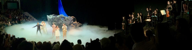 In the end, the most moving moment was not even the harmonies of that final proto-Mozartian quartet. It was the sight of Nicolas Fayol’s faithful Hart, hunched and perched on the baby orphan rock, having been blithely forgotten and abandoned as the happy couples sail away, besotted by love. His body language reminded me of those awful videos you turn to when you can’t sleep — you know — the ones where you cannot believe that you actually watching a lone dog in a parking lot, crumpled in disbelief, as the only family he has ever known has just driven off.