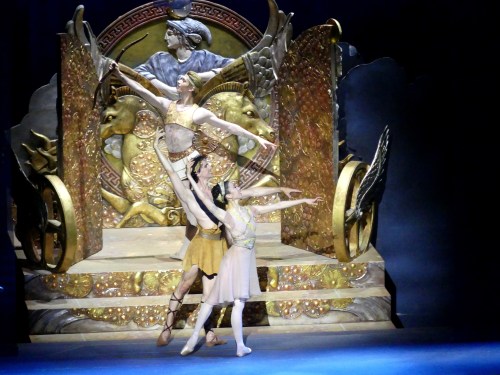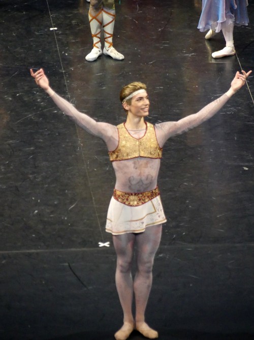 On passe néanmoins un excellent moment. Le challenge technique de la bacchanale finale est aisément relevé. Sae Eun Park est impeccable dans sa variation ainsi que dans la série de pirouettes en attitude devant. Pablo Legasa et Lorenzo Lelli font assaut de virtuosité et on apprécie le contraste d’école qui les sépare. Lorenzo-Eros a des sauts explosifs et une batterie extrêmement croisée. Les impulsions se voient et font partie de la chorégraphie. Pablo-Aminta est lui un modèle de l’école française. Les impulsions sont gommées et l’élévation semble sortie de nulle part. Le danseur parvient même à exprimer l’invite à sa partenaire pendant les pirouettes développées arabesque de sa variation.