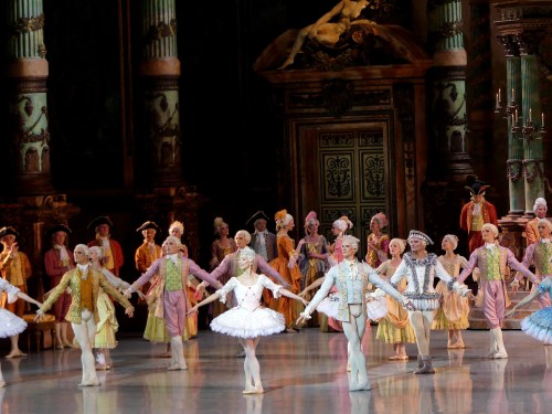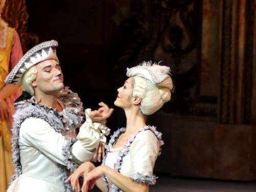 Le plus dommageable reste néanmoins le début du troisième acte. Celui de la production actuelle offre un spectaculaire lever de rideau. Invariablement la salle éclate en applaudissements devant les jaunes et orangées des costumes féminins, les bleus Nattier des redingotes fin XVIIIe des hommes (Franca Squarciapino) sous l’éclat des multiples lustres de cristal. Et puis les danseurs commencent à bouger et le soufflé retombe.