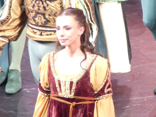 La révélation pour la Juliette de Battistoni vient lors de sa confrontation avec ses parents. La gifle de la mère entraine la colère noire et muette de la jeune fille qui se fige ensuite dans une attitude de défi. Elle s’accroche ensuite désespérément, presque âprement, à la jambe de son père comme si elle jouait sa dernière carte. A partir de ce moment, Juliette prend vraiment le contrôle de son destin. Lors de la scène avec frère Laurent, elle montre toute sa défiance et sa répulsion face à son fiancé malvenu Pâris (Keita Belali, encore très chevaleresque). Dans la Pavane avec ses parents et son prétendant (qui montre subrepticement sa duplicité de caractère), elle se montre indifférente et désincarnée comme si elle murissait déjà sa décision de prendre le faux poison proposé par le prêtre. On a enfin une Juliette forte, conforme à la vision de Noureev.