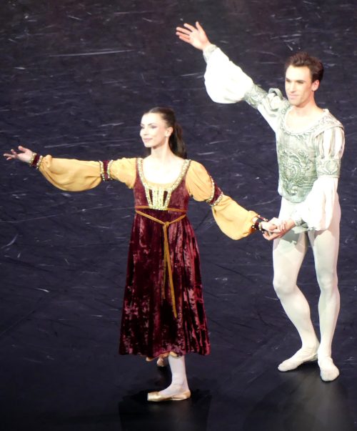 La scène de la rencontre au bal est convaincante. Le couple fonctionne bien techniquement.  Pour la scène de balcon, si les qualités d’accord demeurent, la forme quasi-olympique des deux jeunes interprètes laisse peu de place à l’épuisement et au lâcher-prise voulu par Noureev. On a le sentiment que cette Juliette et ce Roméo pourraient nous refaire une seconde fois le pas de deux sans problème aucun. Le lyrisme est là mais pas tout à fait l’abandon. Les baisers sur le baisser de rideau sont en revanche très touchants.