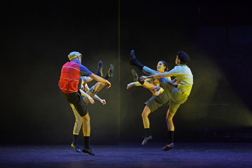La bonne surprise vient d’un chorégraphe qui ne recueille habituellement pas mon suffrage. Hofesh Sheshter va décidément mieux aux corps rompus à la gestuelle ancrée dans le sol de Graham qu’aux danseurs de l’Opéra de Paris. Dans la première section de Cave, le groupe apparaît dans des halos lumineux. Les danseurs scandent en sautillant la musique percussive créée, comme souvent, par le chorégraphe lui-même. Les groupes se forment ou se difractent de manière inattendue. Des grappes, des lignes sinusoïdales s’entrecroisent tandis qu’on distingue des soli et des duos subreptices. Les basculés en arrière, les glissés sur les genoux, les dodelinements de la tête ; tout est marquant. A un moment, un simple secoué du poignet fait par le groupe à l’unisson atteint le plus grand effet. Les éclairages (Yi-Chun Chen) sont également bien conçus, passant de la pénombre à la lumière intense et rasante. Même l’attendue « battle », très prisée des chorégraphes d’aujourd’hui, nous entraîne. L’énergie se diffuse à l’ensemble de la salle. Le très grand garçon en bleu (Ethan Palma ?) qui fait des prouesses proches du classique ou la fille en transe (Leslie Andrea Williams?) retiennent particulièrement notre attention. Contrairement à Red Carpet vu à l’Opéra en fin de saison dernière, Cave d’Hofesh Shechter a une structure (la fin en forme de cœur battant arrive à point nommé) et un propos lisible (l’énergie inflammable et animale née des Rave Parties).