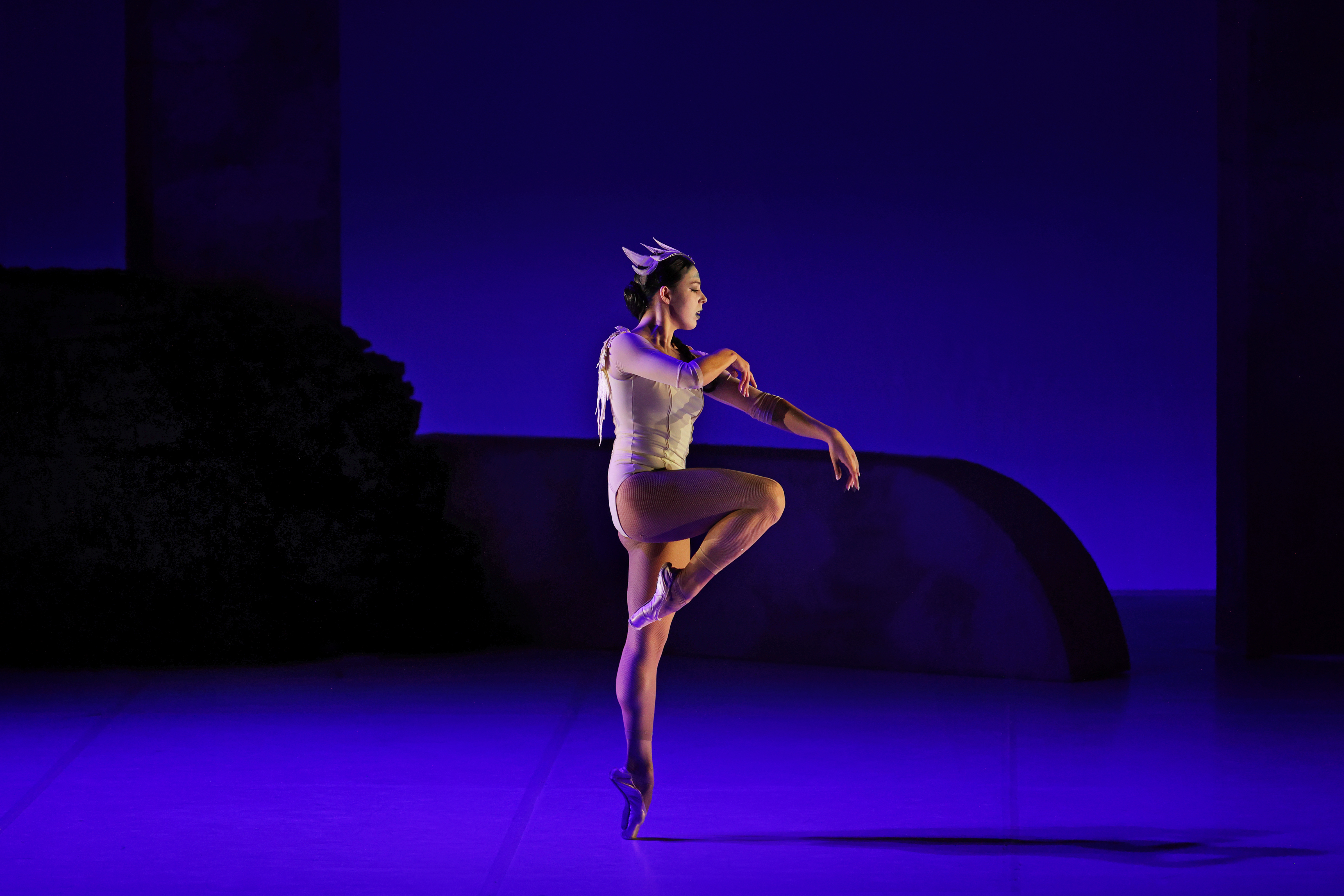 Une scène de la pièce LE LAC DES CYGNES par la COMPAGNIE ILLICITE BAYONNE, directeur artistique et chorégraphe FABIO LOPEZ, organisée par la ville de BAYONNE le 15 février 2025 dans le cadre de LAUGA CÔTÉ SCÈNE. Ballet et danse néoclassique. Photographie de Stéphane Bellocq.