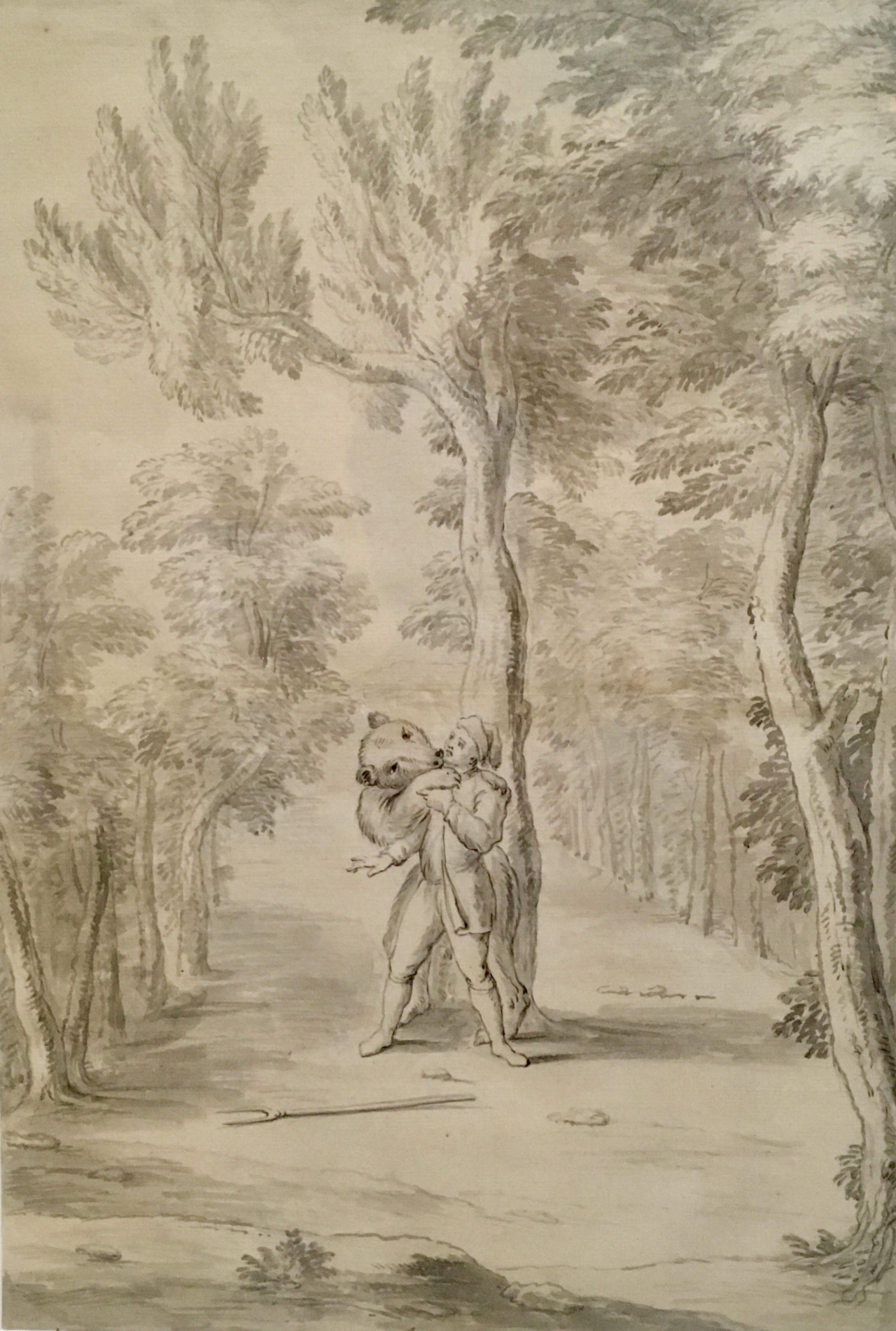 Atelier des Menus Plaisirs, avant 1700. Moron (Molière) et un ours dals la Princesse d’Elide (les plaisirs de l’Isle enchantée).