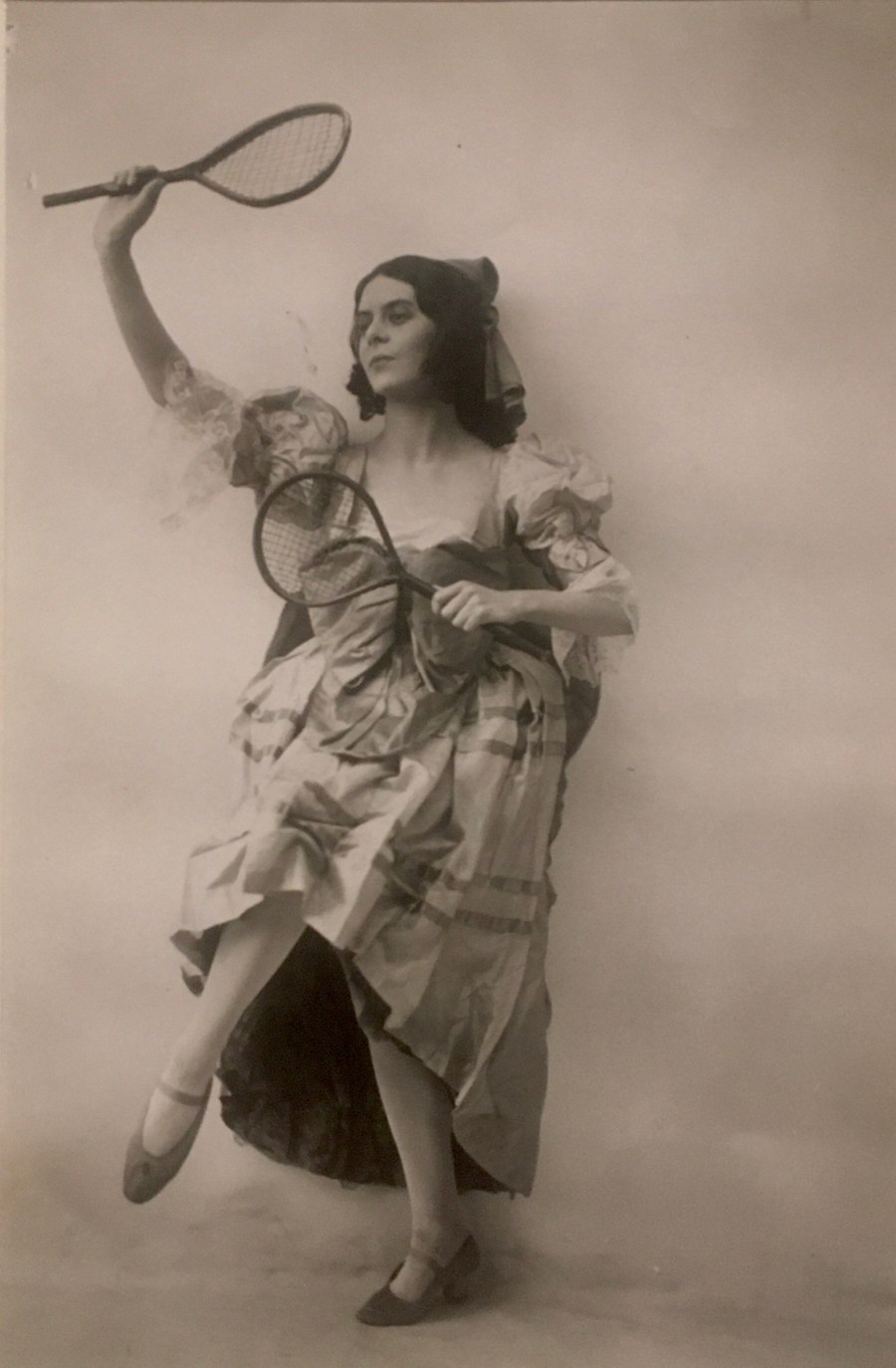 Les Fâcheux de Nijinska. Ballets russes de Serge de Diaghilev. Ninette de Valois en joueuse de volant. Georges Detaille photographe, 1924