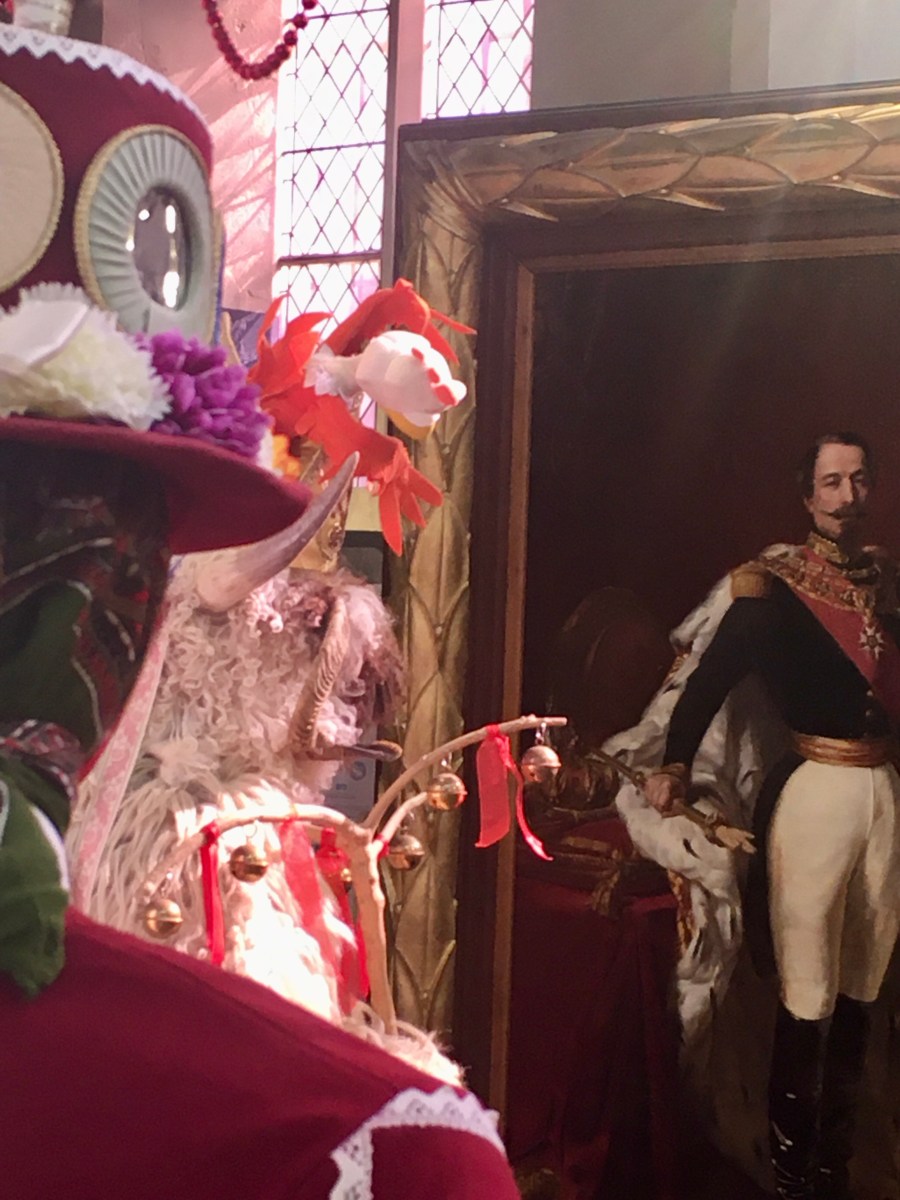 Musée basque de Biarritz. Eposition Gauargi « La lanterne de la Nuit ». Détail d’un costume à miroirs.
