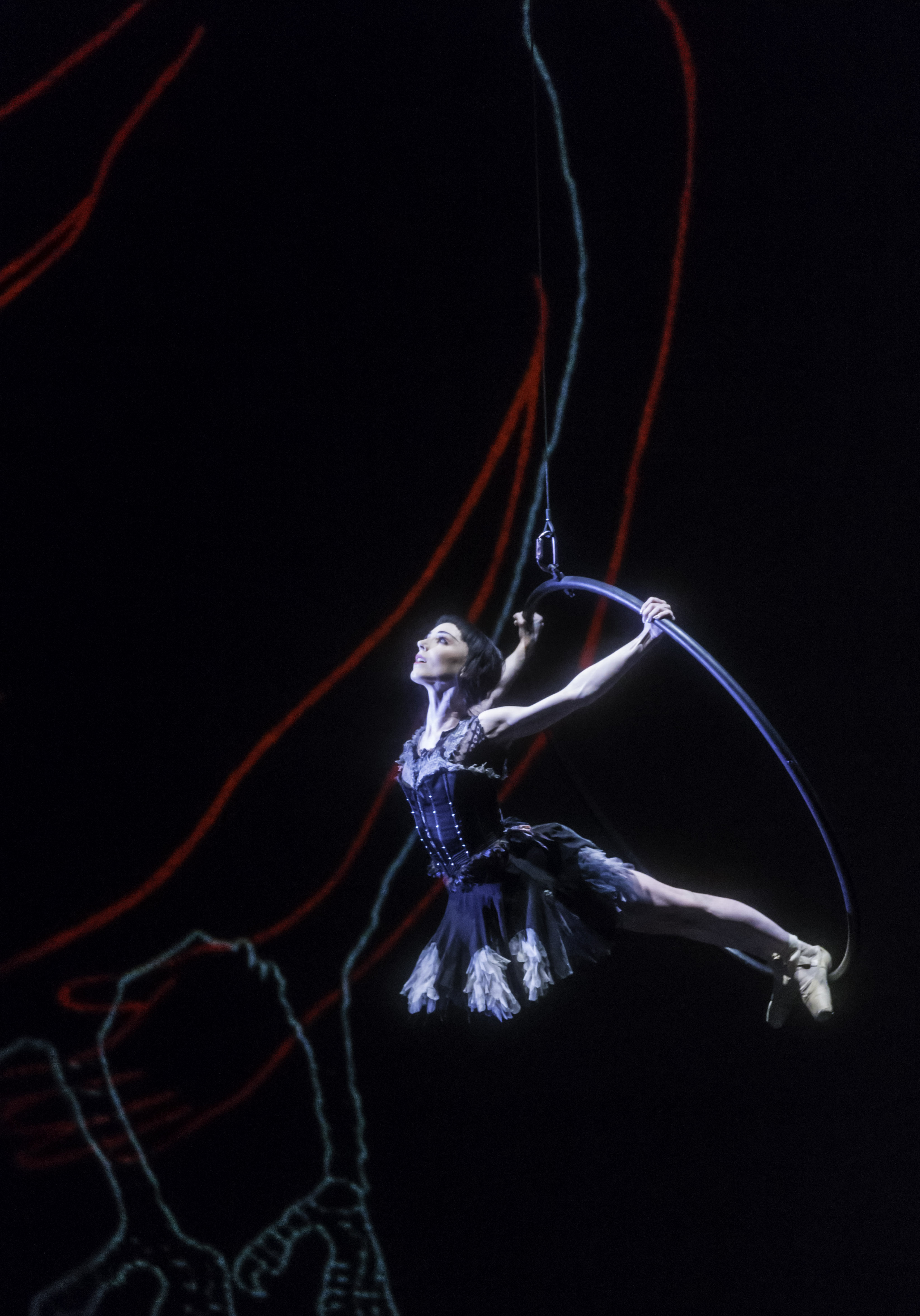 Sarah Lamb perchée dans les airs – Raven Girl – Photo Johan Persson, courtesy of ROH