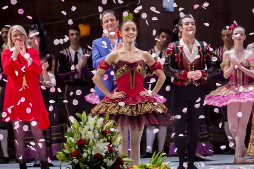Pour la matinée du 23, c’est sous le signe de la maturité et de la maîtrise. Cela commence par le partenariat. Maria Gutiérrez forme un couple d’exception avec Davit Galstyan. Dans l’interprétation de ces deux danseurs, Kitri et Basilio sont des amants mais aussi de vieilles connaissances. On les imagine bien enfants dans les rues de Barcelone en train de jouer des tours aux passants. Cette complicité brille tout particulièrement dans le pas de deux en ouverture de l’acte que Belarbi a, là encore, chorégraphié sur des pièces souvent mises de côté  de la partition de Minkus (une Carmencita extraite de l’acte de la taverne) : Gutiérrez se jette dans les bras de Galstyan sans la moindre once d’appréhension. L’atmosphère devient électrique. Basilio-Davit, maître du moelleux, les réceptions silencieuses, l’œillade facile et le port de bras élégant conduit  en effet sa partenaire le long d’une représentation à la résonance spéciale. Maria Gutiérrez faisait en effet ce jour même ses adieux à la compagnie et à sa carrière professionnelle dans toute la maîtrise de son talent. On se souviendra de sa stature frêle démentie par l’assurance de sa technique limpide, de la délicatesse de son travail de pieds (particulièrement déployé dans le prologue et dans la vision), de ses bras exquis (une couronne très haute et sans presque d’inflexion des coudes, des poignets un peu tombants prolongés par des mains toujours vivantes), de ses piqués attitudes suspendus. On se souviendra surtout de cette proximité très spéciale qu’elle savait instaurer avec ses collègues sur le plateau et avec le public dans la salle.